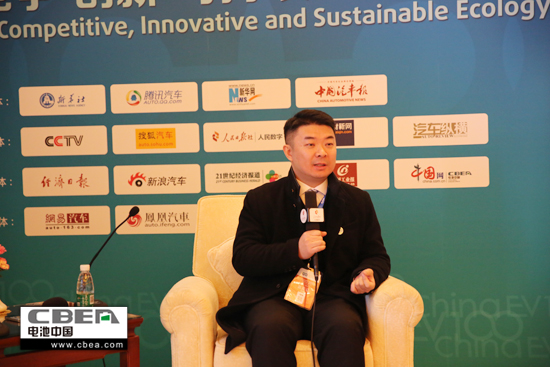 圖為寧德時代新能源市場總監楊琦接受媒體采訪