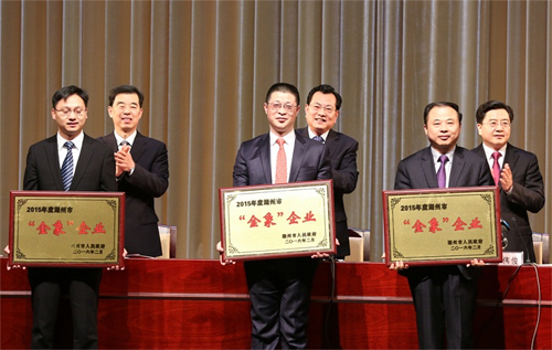 據了解,“金象金牛”大企業培育計劃開始于2014年,湖州市市委、市政府旨在用三年的時間,培育出10家主營業務收入超100億元或實繳稅金超3億元“金象”級企業,20家主營業務收入超50億元或實繳稅金超2億元的“金牛”企業,以及70家主營收入超10億元、實繳稅金超4000萬元且2014年—2016年三年工業性投入5000萬元以上的“金象金牛”后備企業。會上,超威集團以第一名的好成績,同其它4家企業一起,被授予湖州市首批“金象”企業稱號。