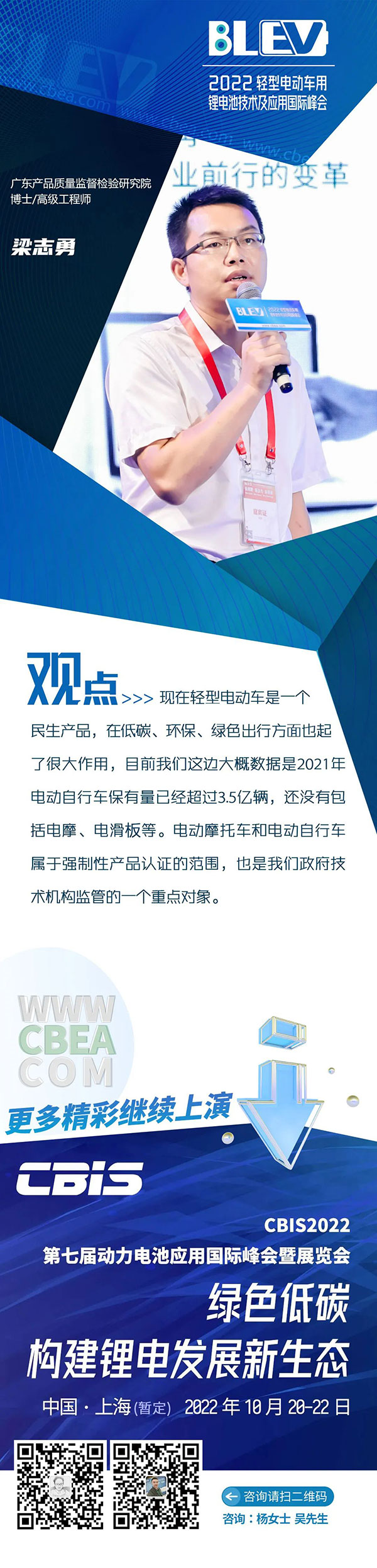 我們廣東省在標(biāo)準(zhǔn)化、智能化方面也在做對(duì)應(yīng)的工作,也跟我們廣東省電動(dòng)車商會(huì)一起在推進(jìn),也得到了廣東省市場(chǎng)監(jiān)管局標(biāo)準(zhǔn)化處、質(zhì)量監(jiān)督處、以及相關(guān)消防、省公安廳大力的支持,現(xiàn)在參考北京協(xié)會(huì)團(tuán)體標(biāo)準(zhǔn),結(jié)合廣東信用賦碼的一些相關(guān)工作,現(xiàn)在已經(jīng)開(kāi)了兩次研討會(huì),對(duì)電芯安全、電池電性能、電池組的安全、電池組的管理系統(tǒng)、充放電接口等也會(huì)做一個(gè)升級(jí),引導(dǎo)我們?nèi)A南板塊的企業(yè)往智能化、高端化去走。