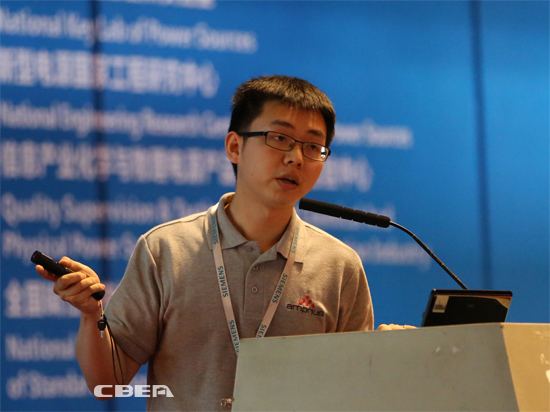 當原子分解的時,電解質中的鋰離子會形成一個膜,在這方面我們希望能找到解決方案。通過加硅將會解決這些問題,它將有一層碳物質的包裹,進而提升它的循環性。在硅的循環過程中,你會看到我們的負極材料比市面上現有的材料表現得好很多。我們還有黏合劑,這種黏合劑不僅可以強化它的結構,還可以提升它的延續性。我們發現它的比率能夠通過添加劑控制。我們在進行材料恢復時,在電解質中添加了新的添加劑,它的循環性得到明顯提升。我們的硅納米負極材料不僅可以提高密度,還可以帶來很多好處,比如鋰離子的分散,可以縮短的距離,順利轉移原子。我們還有一些先進技術,比如我們的硅鋰電池能夠應用在電動汽車上。