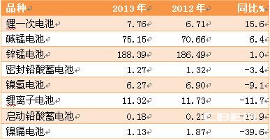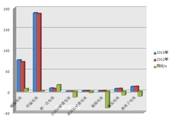 數據表明,2013年我國化學電源主要品種出口總量實現小幅增長,各類電池共出口291億只,而2012年出口量為285億只,同比增長2.1%。