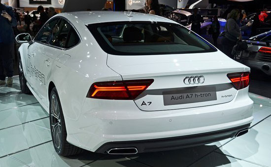 2014洛杉磯車展上,奧迪正式發布了A7 Sportback h-tron quattro概念車,新車采用了奧迪家族最新的“Y”型大燈設計,科技感十足。但車尾處XX TFSI的標識被h-tron取代,以表明其氫燃料電池車身份。該車配有四個氫氣罐,其百公里氣耗約為1千克。