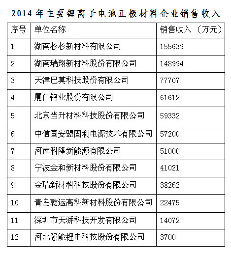 近日,中國化學與物理電源行業協會發布2014年度我國鋰離子電池四大主要材料企業排名情況。