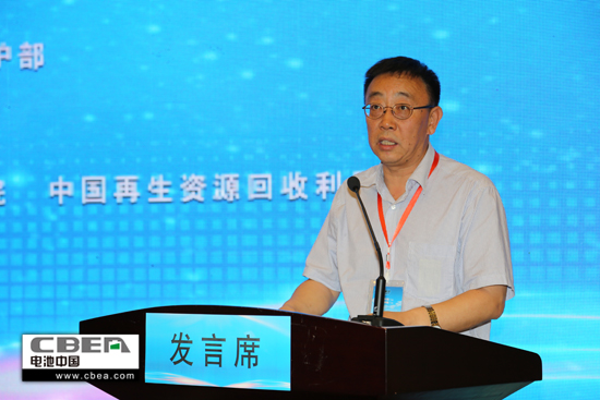 中國電池工業協會理事長韓作樑在成立儀式上致辭
