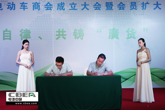 圖為廣東省電動車商會與保險公司進(jìn)行保險簽約儀式