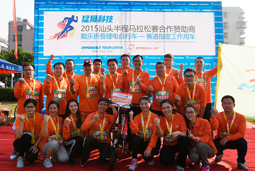 作為“2015年汕頭半程馬拉松賽”賽事合作贊助商,猛獅科技旗下的戴樂一秒折疊鋰電自行車成為“賽道指定工作用車”,而這款車也是猛獅科技踐行“綠色健康生活主張”的一款時尚產品。