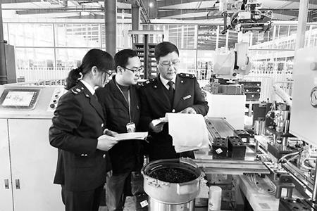 [摘要]2014年4月11日,浙江湖州檢驗檢疫局工作人員對浙江天能電源材料有限公司進口的成套設備進行驗收。