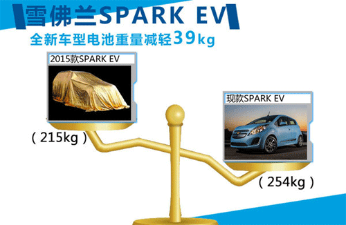 通用汽車將2015款雪佛蘭SPARK EV車型改為自產(chǎn)電池系統(tǒng),由通用位于密歇根州的Brownstown工廠負(fù)責(zé)生產(chǎn)。此外還將對(duì)其生產(chǎn)的電池進(jìn)行改良,在保持原有性能的同時(shí),由于全新電池組容量從此前的21kWh降低為19kWh,因此整車重量也降低至215kg,比現(xiàn)款車型所采用的A123 Systems公司電池減輕39kg,進(jìn)一步降低了新車型的耗電量。