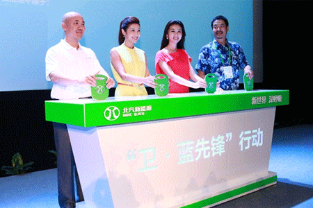 著名影視演員濮存昕、電視主持人春妮、交通廣播主持人李莉、順風車活動發(fā)起人王永等4名社會知名人士正式受聘為北京綠色出行大使,承諾將積極倡導廣大市民選擇純電動汽車作為交通工具,北汽新能源公司將為每位公益大使免費提供綠色出行宣傳車,一輛供大使自己使用,一輛供大使推薦給他人使用,使用期限至少一年。
