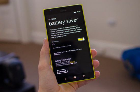 根據報道稱,Lumia 1520 在正常使用情況下的電池壽命令人印象深刻,在簡單的日常使用時不用擔心電池續航的問題。外媒 Mynokiablog 編輯為此特別安裝了一款電池管理應用,可以提供“電池電量低于 8 小時使用時長”的警示。對于一些智能手機來說,8 小時差不多相當于一整天的電池續航使用時長。然而,經過普通的日常體驗后,Lumia 1520在滿電情況下使用差不多一到兩天之后,電池電量仍然還剩 30%。