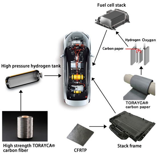 東麗近日宣布,其碳纖維材料已應用于豐田汽車公司今年12月將推出的燃料電池汽車MIRAI上。