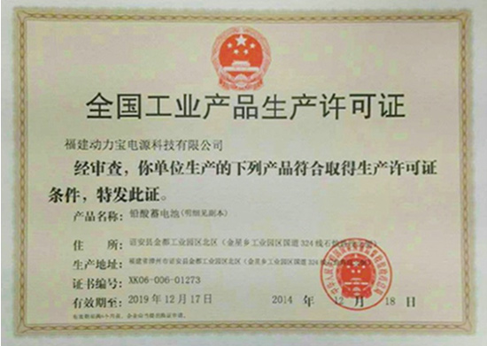 近日,廣東猛獅電源科技股份有限公司(以下簡稱猛獅科技)全資子公司福建動力寶電源科技有限公司(以下簡稱福建動力寶)取得了國家質量監督檢驗檢疫總局頒發的《全國工業產品生產許可證》,正式獲準生產鉛電池產品。