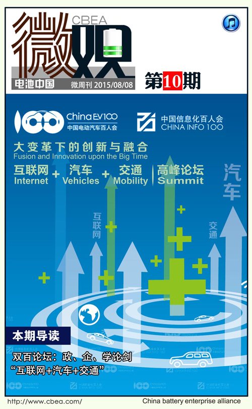 本期看點:2015年8月1日,由中國電動汽車百人會、中國信息化百人會聯(lián)合舉辦的“大變革下的創(chuàng)新與融合——‘互聯(lián)網(wǎng)+汽車+交通’高峰論壇”在北京拉開帷幕。數(shù)百位來自信息技術、汽車、能源、交通、金融等相關領域的政府官員、專家學者和企業(yè)界代表出席會議。