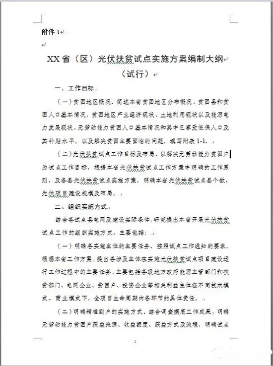 國家能源局:光伏扶貧試點實施方案編制大綱(修訂稿)正式發布