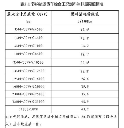 節約能源重型商用車綜合工況燃料消耗量限值標準