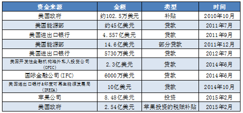 First Solar近5年獲得美國政府補貼及貸款詳情