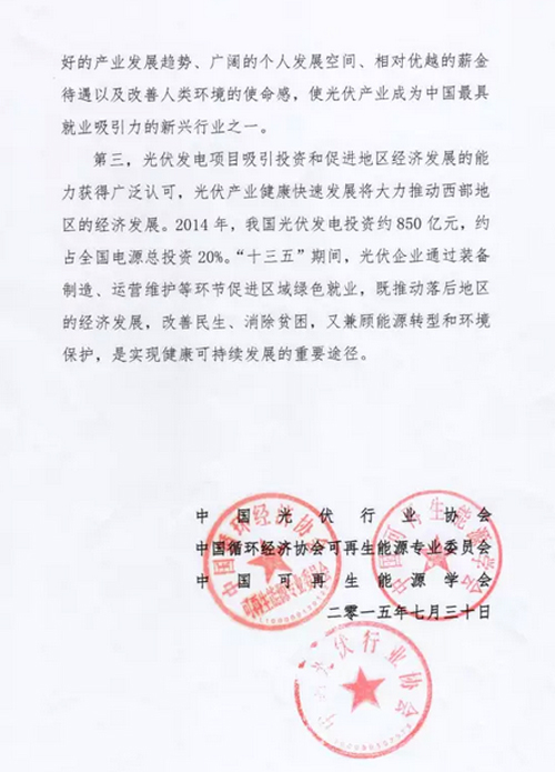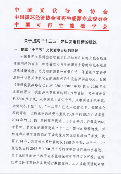 [摘要]作為中國最具影響力的三大光伏行業協會:中國光伏行業協會、中國循環經濟協會可再生能源專業委員會、中國可再生能源學會聯名提交有關促進光伏行業發展的三大政策文件。