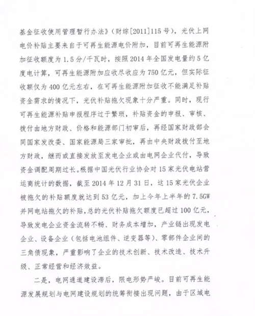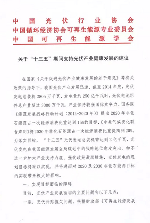 《關于“十三五”期間支持光伏產業健康發展的建議》