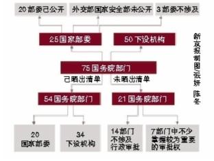 其余7個未公開的部門,有外交部、國家安全部這兩個國家部委,以及國務院5個下設機構,這5個機構中不少掌握較為重要的審批權,如海關總署、國家工商行政管理總局、國家中醫藥管理局。