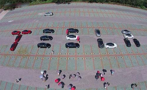 航拍特斯拉車(chē)隊(duì)演繹的Logo效果