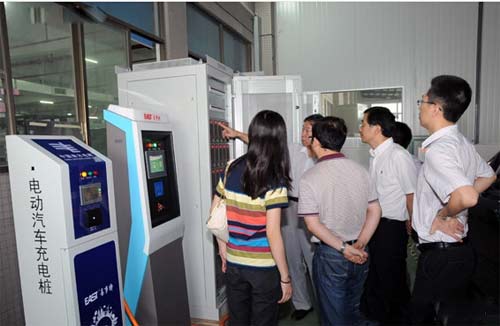 易事特公司徐海波和王鳳仁兩位博士向調研組重點介紹了易事特正大力發展的新能源車智能充電業務。據他們透露,在國內外均積極鼓勵和支持新能源汽車推廣應用的背景下,易事特聯合東莞中山大學研究院、宏遠汽車有限公司、邁科新能源有限公司等企業和科研院所共同發起組建了“廣東東莞新能源車產業技術聯盟”,強勢挺進新能源車產業,并憑借20余年電源行業經驗及科技創新優勢大力拓展新能源車智能充電業務。