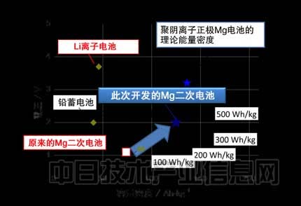 此次組合使用所開發的正極和電解質,試制了二次電池。與已有的Mg二次電池相比,理論能量密度約提高6倍(圖)。而且,還具有不使用化學上不穩定的格氏試劑及有腐蝕性的鹵素離子等優點。