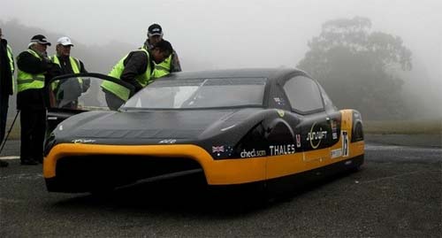 據(jù)介紹,Sunswift EVE只可搭載兩名成年人,整車重量只有318公斤,甚至比特斯拉Model S的電池組還要輕。其最高時(shí)速可達(dá)140公里/小時(shí),一次充電最遠(yuǎn)可行駛800公里。在車頂和引擎蓋上覆蓋了800瓦的太陽能電池板,此外還內(nèi)置了一塊由松下公司制造的重達(dá)60公斤的電池。使用普通電壓的家用插座,充滿電需要8小時(shí);而如果使用標(biāo)準(zhǔn)的電動(dòng)汽車充電電源,5小時(shí)即可充滿。Sunswift團(tuán)隊(duì)稱,借助先進(jìn)的太陽能電池系統(tǒng),只要在陽光下泊車8小時(shí),EVE就能連續(xù)行駛2個(gè)小時(shí)。即便在行駛途中,這些太陽能電池也能持續(xù)發(fā)電。因此,為了滿足國(guó)際汽聯(lián)的要求,Sunswift團(tuán)隊(duì)專門關(guān)掉了EVE的太陽能發(fā)電系統(tǒng),以確保其創(chuàng)造“最快電動(dòng)汽車”的世界紀(jì)錄。