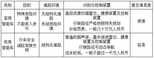 軍用智能車與民用智能車對比表