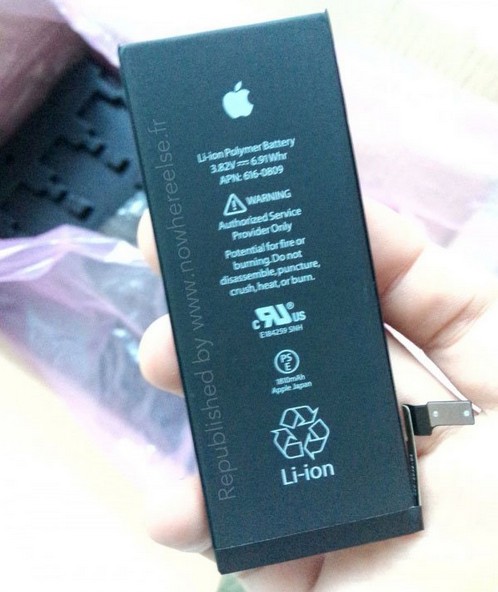 今天,由Nowhereelse.fr提供的新諜照證實(shí)了1810毫安時(shí)的說法。求提供額外的支持。這張諜照當(dāng)中,電池外觀非常好看,外表面印刷了全套規(guī)范標(biāo)志以及一個(gè)蘋果的logo,還有有一張照片顯示在托盤中裝運(yùn)的電池。