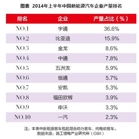 在國家利好政策刺激下,新能源客車產銷量激增。根據高工鋰電研究所(GBII)調研數據,2014年上半年,國內新能源客車實際產量超過6721輛,同比增長164%。預計下半年將繼續放量,全年新能源客車產量有望超過1.5萬輛。其中比亞迪K9的訂單就達到5000輛,受制于鋰電池產能,預計全年能交付4000臺左右。另外宇通全年的新能源客車產量估計能超過6000臺。