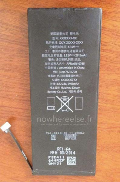 法國網(wǎng)站Nowhereelse.fr今日放出新圖,聲稱這是一塊來自5.5英寸iPhone 6的電池,圖中顯示電池容量為2915mAh,這一容量與上個(gè)月《Apple Daily》給出的消息一致。