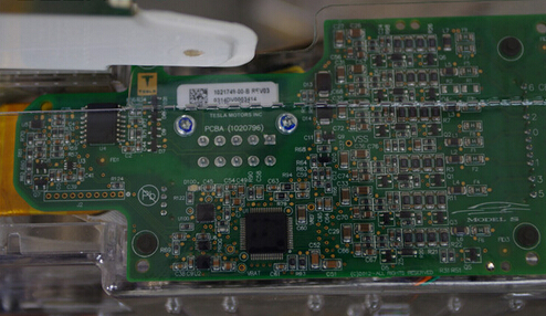 由于Tesla使用的是18650鋰電池,這種鋰電池就是我們筆記本電腦中使用的電池,所以其電控方面的技術(shù)是非常成熟的,雖然我想了很多辦法還是無法看清楚主板上芯片的型號,但還是能推測出上面主要有充放電管理芯片和電池計量管理芯片,相比筆記本電池,其復(fù)雜的地方應(yīng)該在多路的電池信號采集和控制算法上,畢竟電動汽車成百上千節(jié)電池的監(jiān)控和筆記本電腦10節(jié)左右的電池監(jiān)控不在一個數(shù)量級上。