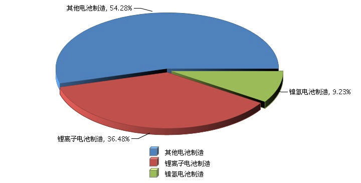 圖7: 2014年1~6月全國電池行業(yè)累計主營業(yè)務(wù)收入行業(yè)小類占比情況