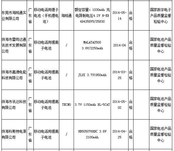 國家質檢總局17日公布的2014年第2季度移動電話用鋰離子電池產品質量國家監(jiān)督抽查結果顯示,不合格產品檢出率為10.7%,不合格產品檢出率同比上次抽查高出了2.1個百分點。