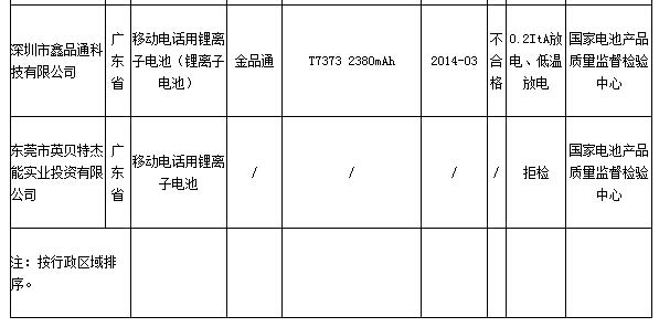 另外,東莞市英貝特杰能實業(yè)投資有限公司在本次抽查中拒檢。