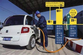 目前正在制修訂的電動汽車標(biāo)準(zhǔn)還有77項,其中現(xiàn)有標(biāo)準(zhǔn)修訂16項,基礎(chǔ)設(shè)施規(guī)劃設(shè)計、建設(shè)運營、電池回收利用等新標(biāo)準(zhǔn)制定61項。這些標(biāo)準(zhǔn)中,目前已完成報批稿23項,不久將批準(zhǔn)發(fā)布。