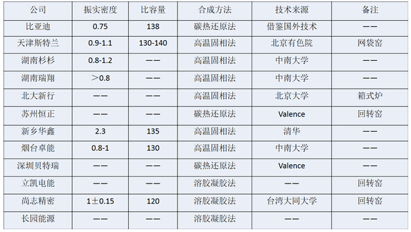 表2.中國磷酸鐵鋰正極材料廠商概況