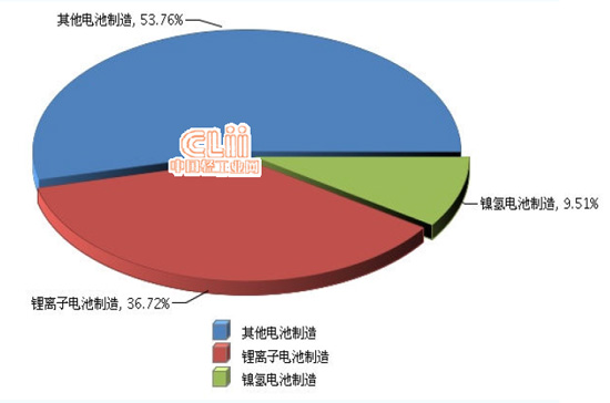 圖7 2014年1~9月全國電池行業累計主營業務收入行業小類占比情況