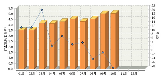 [摘要]根據國家統計局公布數據,全國鋰離子電池行業累計完成產量43.56億只(自然只),同比增長4.56%。其中:10月份完成產量5.05億只(自然只),同比增長-7.48%。