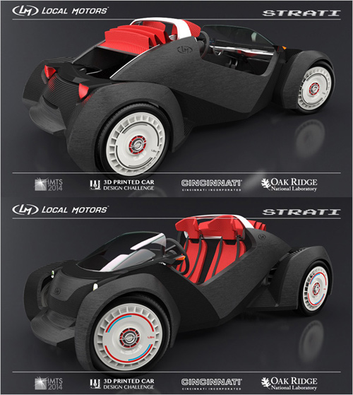 在2014年于美國芝加哥舉行的IMTS(International Manufacturing Technology Show)國際制造技術展覽會上,號稱世界上第一輛3D打印電動汽車“Strati”(斯特拉蒂)就這么在與會者們的親眼見證下誕生了。更醉人的是,從打印Strati零部件到組裝成整車,僅用時44個小時。