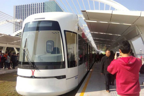 2014年的最后一天,隨著一聲汽笛的長(zhǎng)鳴,廣州海珠有軌電車示范線開通,廣州市民試乘上世界首列采用超級(jí)電容的儲(chǔ)能式100%低地板有軌電車。