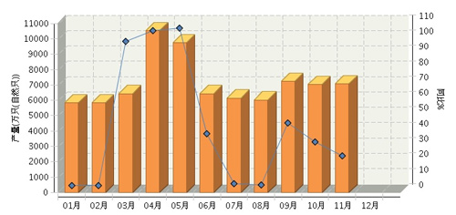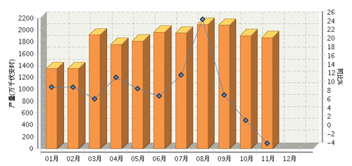 2014年1-11月全國鉛酸蓄電池行業(yè)累計(jì)完成產(chǎn)量同比增長6.74%。其中:11月份完成產(chǎn)量同比增長-2.76%。