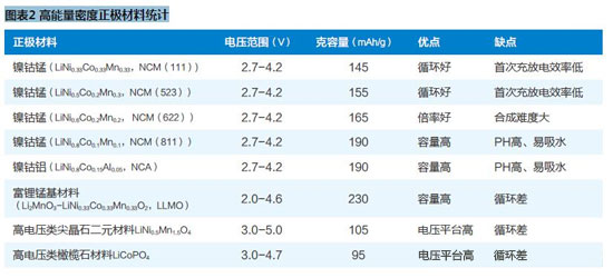 由前述鋰離子電池能量密度的計算方法可知,通過采用高容量正極或高電壓正極,可顯著提升單體電池能量密度。
