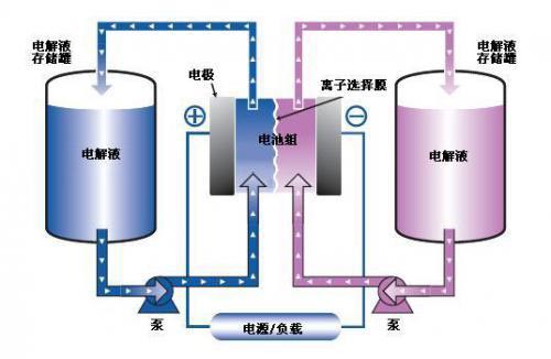 液流電池是普通的化學電池,它的特點是把正極和負極電解液單獨存放,解決了普通化學電池活性物質利用率的問題。理論上可以有更高的能量密度,而且充放電次數也更多,有非常理想的性能。