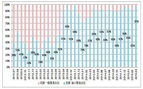 圖7 2015年3月份國別按加工貿易方式進口占比 數據來源:海關