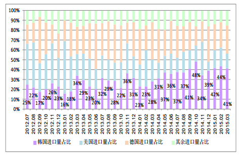 圖6 2015年3月各國進口量占比 數據來源:海關