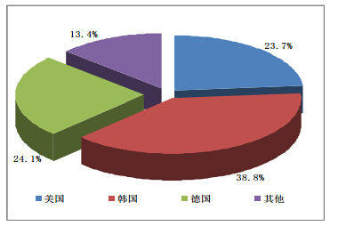 據3月份分國別進口數據顯示,自韓國、美國、德國三國共進口多晶硅8733噸,占總進口量的84.8%,其中從韓國進口量為4224噸,占總進口量的41.0%;從美國進口量為1572噸,占總進口量的15.3%;從德國進口量為2938噸,占總進口量的28.5%;其他地區進口量為1563噸,占總量的15.2%。