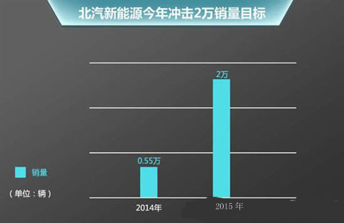 2014年3月份北汽第一款純電動轎車E150EV面向私人市場上市,并以全年5510輛的銷量奪得純電動乘用車銷量冠軍。今年一季度北汽E系電動車?yán)塾?jì)銷售1950輛,幫助北汽躋身新能源車銷量第四名。目前,北汽新能源已擁有基于北汽E系列的E150EV、EV200,基于紳寶D70的ES210以及三款新能源產(chǎn)品。北汽新能源總經(jīng)理鄭剛表示:未來兩年內(nèi)北汽新能源將會推出8款新車。其中,2015年規(guī)劃內(nèi)推出的車型代號為C10IB、C50EB、C71GB,分別為微型車、緊湊型和一款中型車。今年北汽新能源的目標(biāo)是實(shí)現(xiàn)2萬輛以上銷量。