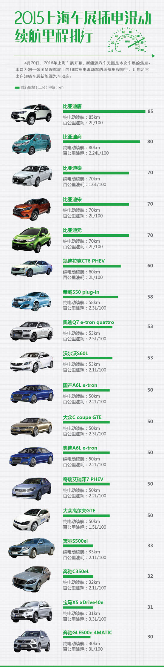 2015上海車展插電混動續航里程排行榜