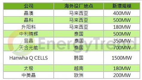 根據(jù)EnergyTrend的調(diào)查研究,許多廠商今年上半年已紛紛宣布將在東南亞或韓國(guó)等地新設(shè)產(chǎn)能,在不計(jì)印度新增產(chǎn)能的情況下,2015年年底前,僅此亞太區(qū)域的電池產(chǎn)能估計(jì)將達(dá)4.5GW,只要年底前能順利開(kāi)出產(chǎn)能,就足夠供應(yīng)美國(guó)所需。因此,在這些產(chǎn)能開(kāi)出后,海外電池的供需可望達(dá)到較平衡的狀態(tài),使得中國(guó)、臺(tái)灣生產(chǎn)的電池價(jià)格面臨下跌壓力。
